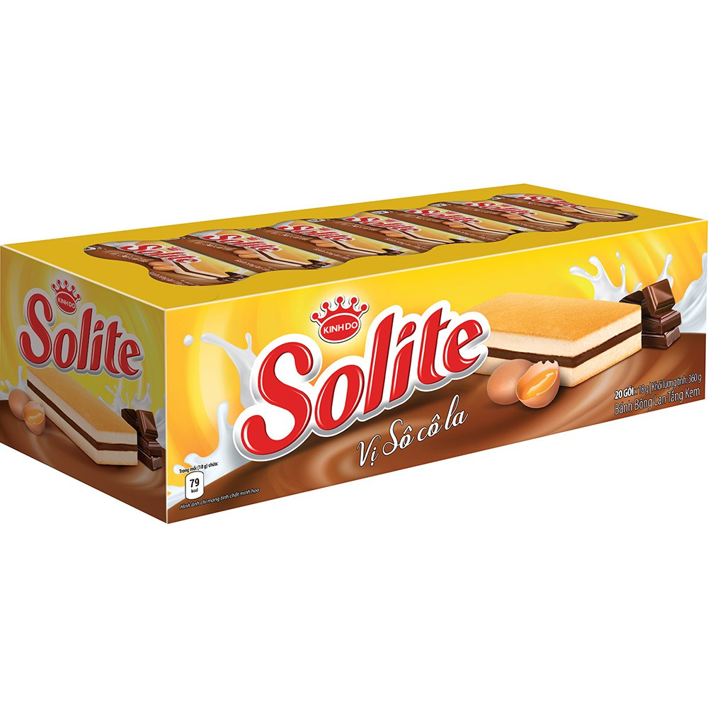 Solite chocolate cream rolled sponge cake is made from guaranteed ingredients, has excellent quality and flavors to suit everyone’s taste. The cake box includes 20 small packages inside, convenient to carry and store when going to school, work or on a picnic